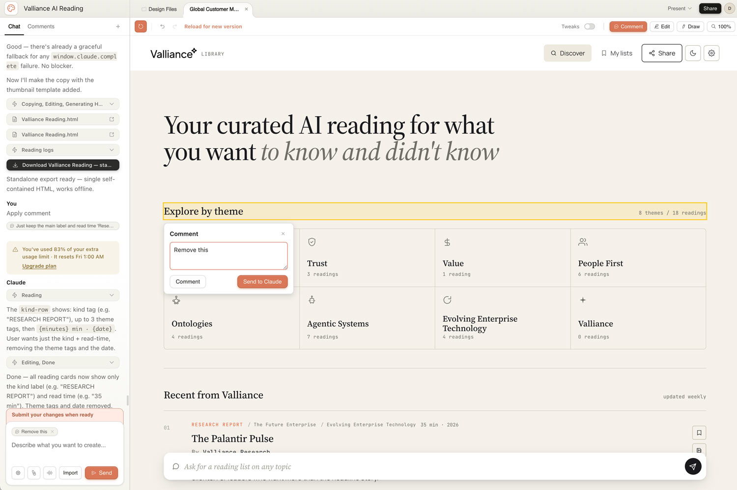 You can see it here 👉 https://share.valliance.ai/p/RKKNTUMS/ Full designers caveat - It has very limited functionality, is quite a large standalong HTML file and isn’t mobile friendly (yet) Consider this a ‘primitive’ to use a Claude CoWork term.