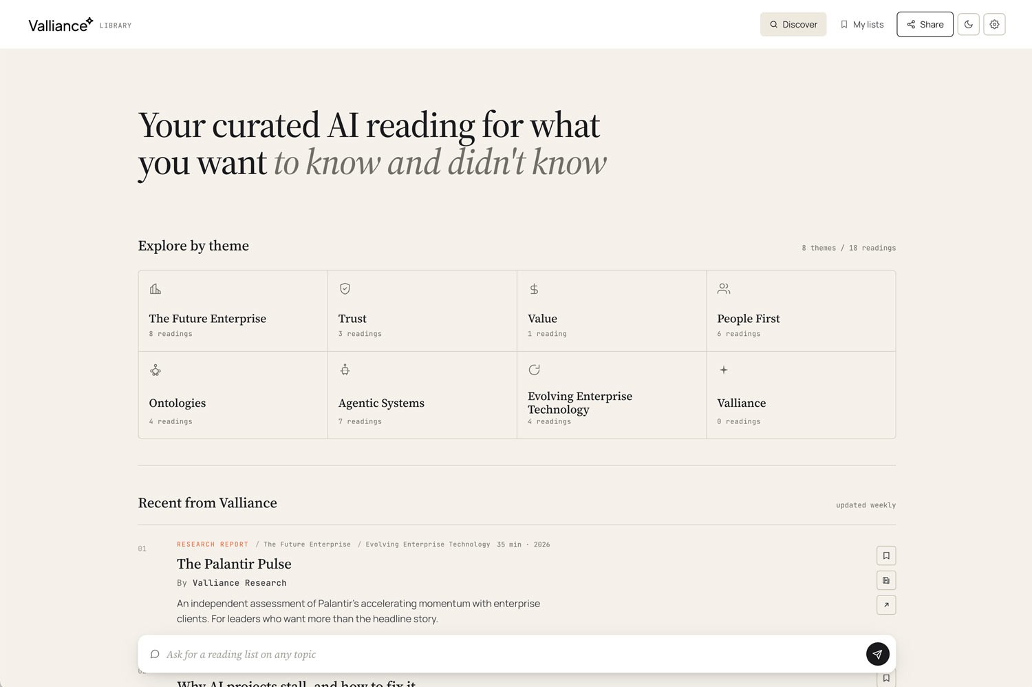 We decided to set ourselves a simple challenge. Use Claude Design to build a new front end for Valliance's internal learning resource library (currently a collection of scraped news stories, articles, and white papers living in Notion). Ninety minutes each, from a cold start. Go.